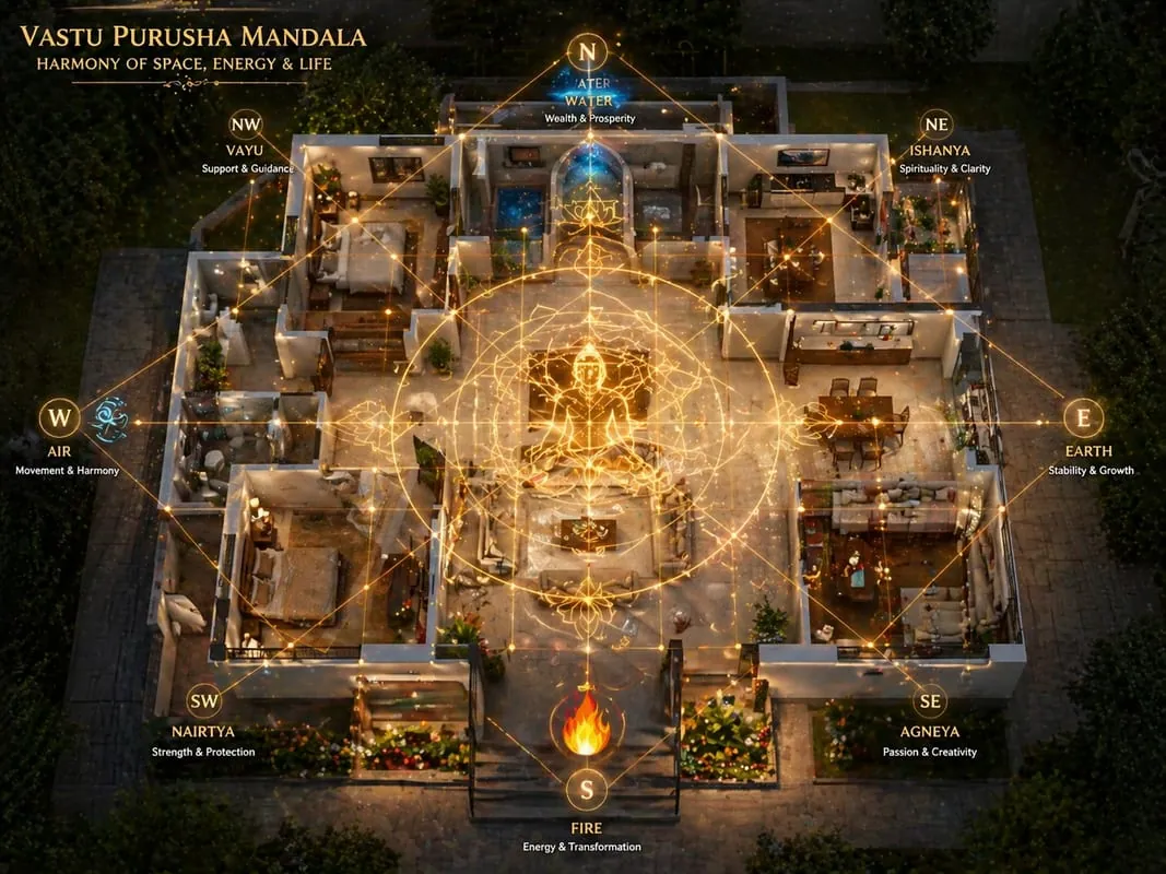 For flats, we focus on the entrance (Main Door), the kitchen (Agni), and the Master Bedroom. Since you cannot change the structure of a flat, we use effective symbolic and elemental remedies to align the space with Vedic principles.